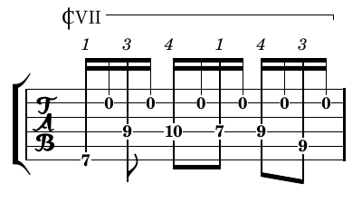 Nichtsdestotrotz hier die Möglichkeit die Fingersätze grau und mit Kreis in die Tabulatur zu setzen.
