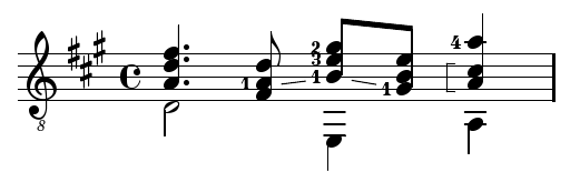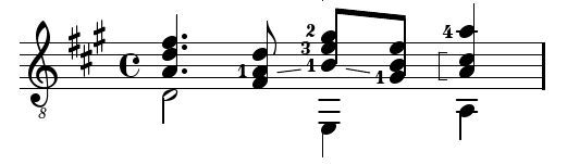 < a,-1 d>8  <b-1 e-3 gis-2>  <gis-1 b e>